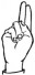 На ћирилици написано ДИНА БАЏА састоји се из 8 слова [?]. Исписано ћириличном једноручном азбуком за глувонеме: